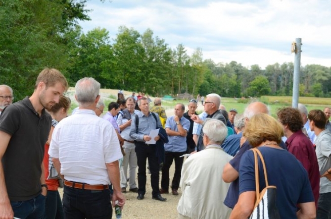 Die Exkursion vom 18.08.2015 führte uns in die neu gestaltete Rheinaue in Rietheim. Nach einer interessanten Einleitung durch den Gemeindeammann von Rietheim, Beat Rudolf, wurden wir fachkundig durch das Auengebiet geführt. Die beiden Projektleiter Erik Olbrecht (ALG BVU) und Ulysses Witzig (creaNatira), Bauleiter Marco Kaufmann (Hunziker, Zarn & Partner) und Holzbrückeningenieur Walter Bieler zeigten die verschiedenen Besonderheiten des neu geschaffenen Lebens- und Erholungsraums für Mensch, Tier und Natur. Im Rahmen des Anlasses wurden die beiden Holzbrücken und die Aussichtsplattform mit dem ‚Herkunftszeichen Schweizer Holz‘ der Lignum Schweiz ausgezeichnet. Mit einem Apero am Ufer der neu erstellten ‚Blue Lagoon‘ wurde der gelungene und lehrreiche Abend abgerundet. Der sia aargau bedankt sich nochmals herzlich bei allen Referenten, sowie bei der Familie Schneider für den feinen Apero.