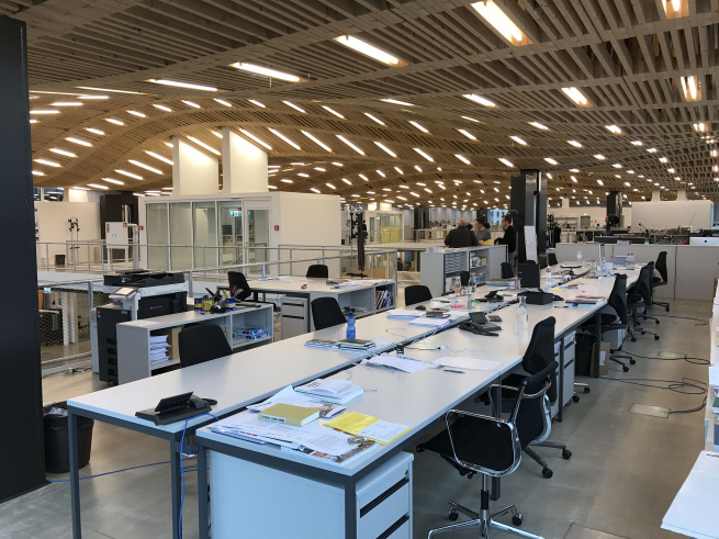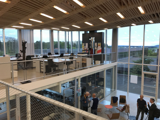 Bei der anschließenden Begehung ließen sich die Räumlichkeiten erkunden und die großzügige und offene Arbeitswelt der beteiligten Professuren erfahren. Ein reicher und feiner Apéro rundete den gelungenen Anlass ab.