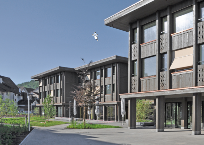 Das neue Generationenhaus liegt am Rande des historischen Ortskerns von Bad Zurzach. Durch die differenzierte Staffelung verzahnt sich das Haus mit dem Park und verleiht ihm, in Anlehnung an die typischen Hinterhäuser des ehemaligen Marktfleckens, einen pavillonartigen Ausdruck. Trotz des umfangreichen Raumprogrammes gelingt es den Architekten, im historischen Ortsbild ein ausgewogenes Gebäude gegenüber dem Verenamünster einzufügen.