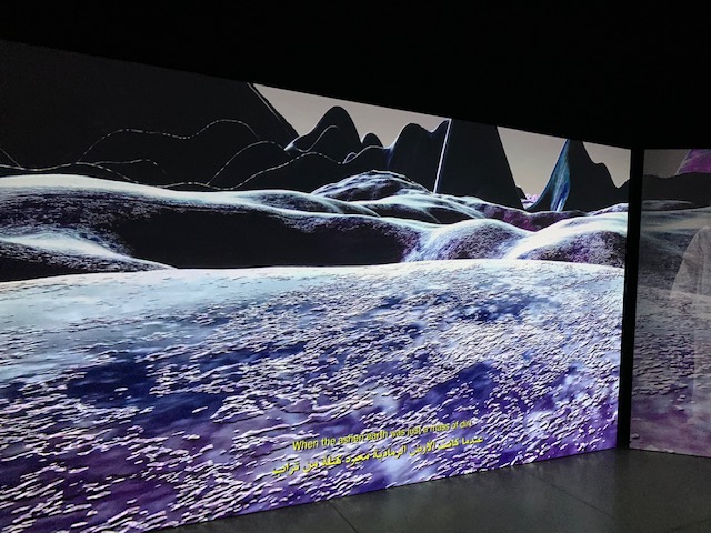 Danach wurden wir in zwei Gruppen von Bassma El Adisey und Astrid Näff durch die Ausstellung geführt. In Reaktion auf die durch die Coronapandemie ausgelösten Erschütterungen gestaltet sich «Art as Connection» als eine experimentelle und offen angelegte Ausstellung. Die künstlerischen Beiträge wurden in einem kollektiven Diskurs entwickelt. Die Arbeiten greifen bereits vorhandene politische, soziale und künstlerische Fragestellungen auf, die sich durch die einschneidenden Herausforderungen des vergangenen Jahres zugespitzt und verstärkt haben. So konnten wir eindrücklich erleben, wie die Themen Migration und Geschlecht neben der durch die Pandemie ausgelösten sozialen Isolation die Künstlerinnen und Künstler bewegt.