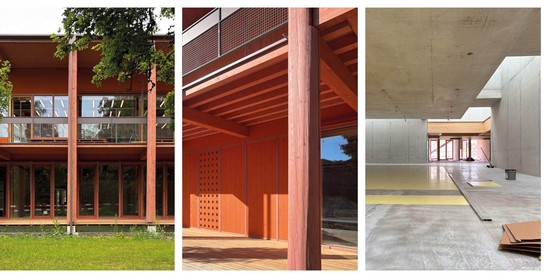 Der zweigeschossige, quadratische Pavillon des Amtes für Verbraucherschutz Aargau steht als Solitär im bestehen-den Campus. Einer klaren Nutzungsverteilung entsprechend ist der Baukörper in vier konzentrischen Raumschichten organisiert: Laubengang, Haupträume, Nebenräume und zentraler Raum. Um eine mittige Betonskulptur mit zenitalem Tageslicht arrondieren sich Büros und Labore in Holzkonstruktion. Im Erdgeschoss entsteht unter dem massiven Betonkern ein open space, welcher komplementär zum klassischen Büro einen Ort für spontane Besprechungen, Interaktion, Besucheraufenthalte und Veranstaltungen definiert. Der verglaste Baukörper mit dem vorgestellten Laubengang verbindet den Innenraum mit der umgebenden Landschaft. Insgesamt ist an diesem Ort eine klare, geometrische Struktur mit räumlichen Bezügen, konstruktiver Raffinesse und nachhaltiger Konzeption entstanden.