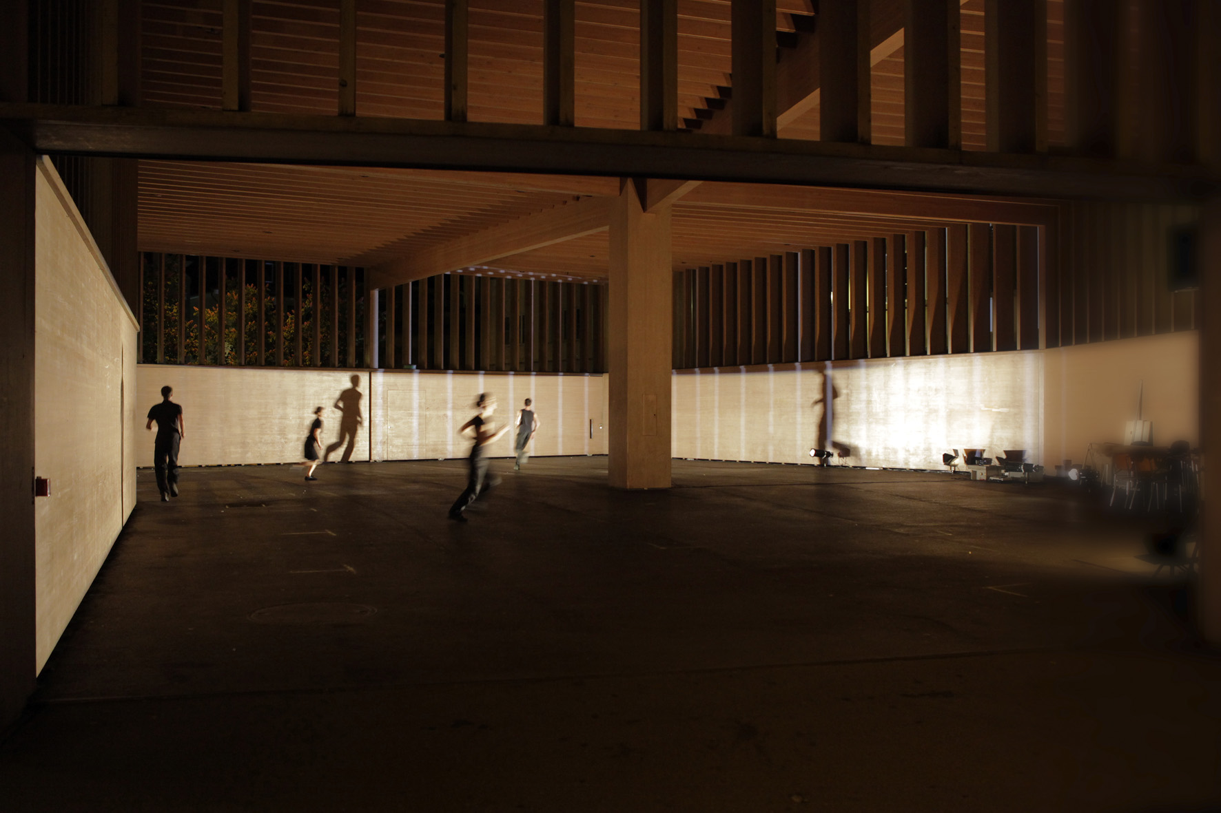 «Annas Kollektiv» entwickelt eine ortsspezifische Performance und wird dabei die Markthalle und ihre Umgebung in ein Spiel aus Raum, Licht, Bewegung, Video und Ton verwickeln. Massfiguren gleich üben sich die Performer im Umgang mit dem vorhandenen, schreiten entlang, wiegen ab, stehen auf, stellen in Frage, ruhen in sich, erscheinen virtuell und beginnen von vorne. es geht dabei um Aspekte des Raumes, Fragen der Wahrnehmung, und die spielerische Annäherung von Mensch und städtischem Zwischenraum.